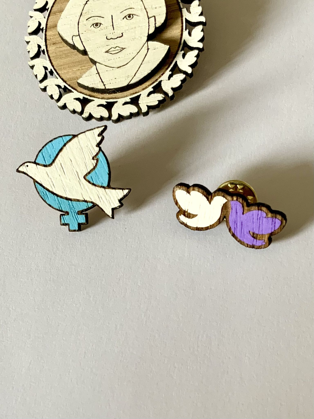 Pin’s « colombes féministes » car le féminisme par ses principes est un vecteur de paix.