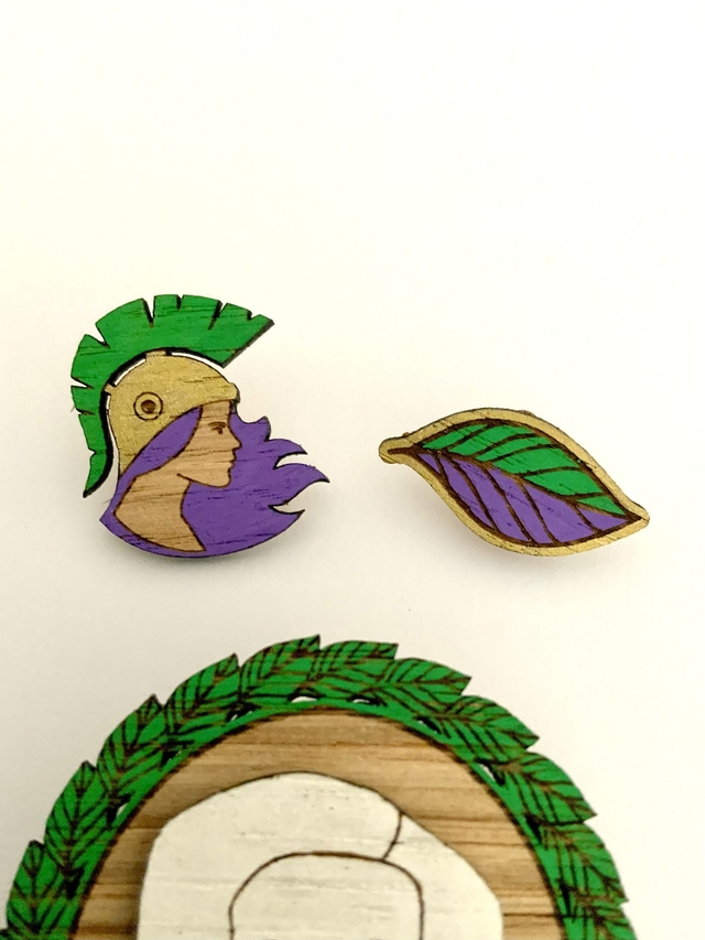 Pin’s « feuille écoféministe » qui symbolise le rapprochement entre écologie et féminisme.