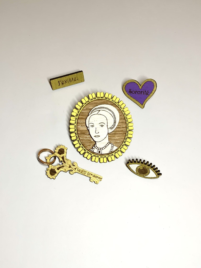 Pin’s « J’existe. » pour ne plus être ignorée et effacée en raison de son genre.