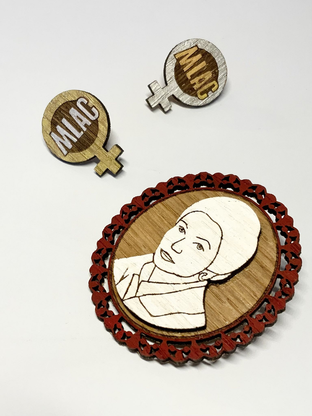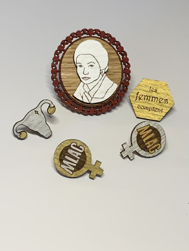 Pin’s « MLAC » car le « Mouvement de Libération de l’Avortement et de la Contraception » a permis la diffusion de techniques d’avortement moins dangereuses pour les femmes et s’est battu pour le droit à l’avortement libre et gratuit par de nombreuses manifestations et actions politiques.