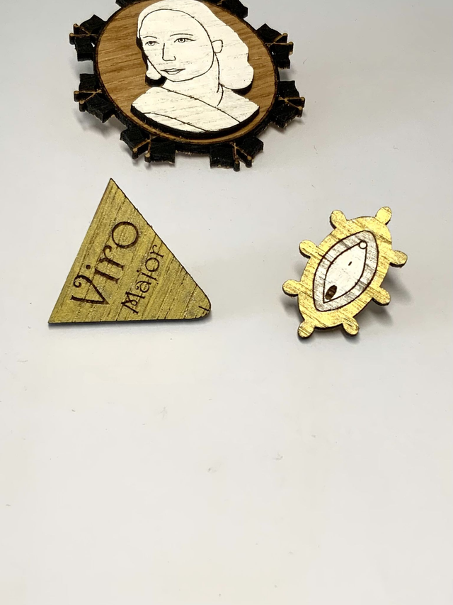 Pin’s « Viro Major » qui signifie « plus grande qu’un homme » et qui est le titre d’un poème de Victor Hugo célébrant Louise Michel.